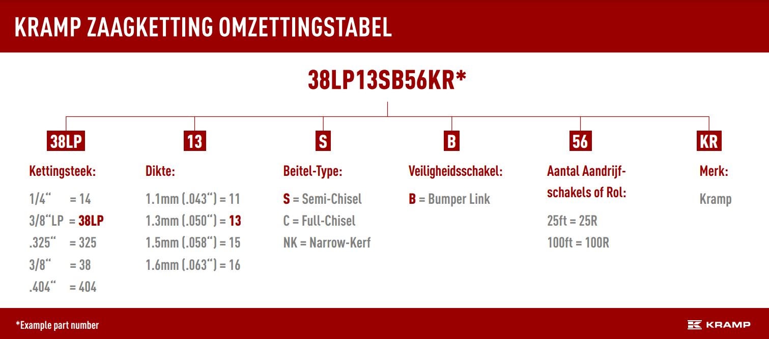 Gebruik de onderstaande grafiek als leidraad om de juiste zaagketting voor je kettingzaag te vinden: