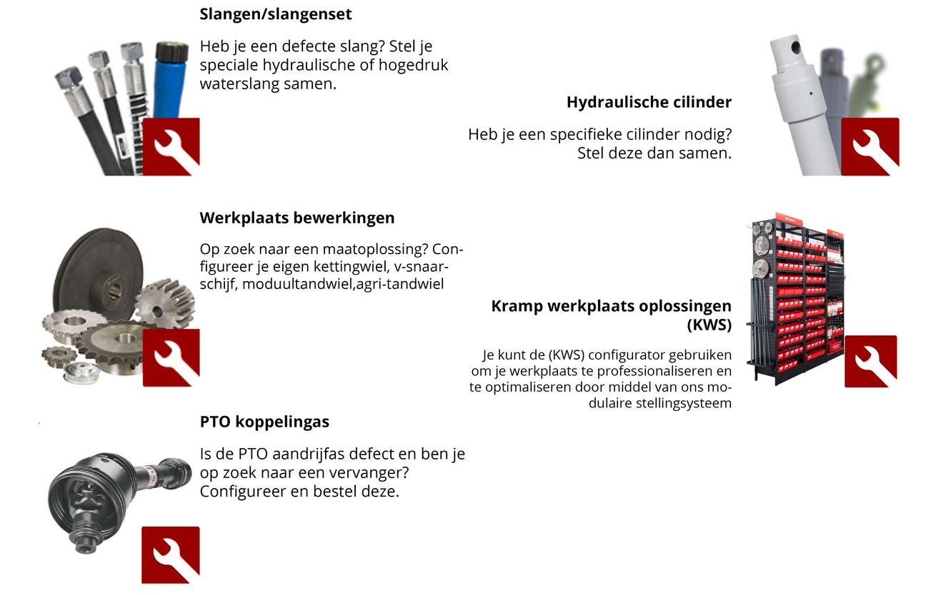 Om gebruik te maken van de online configurator is het belangrijk om eerst in te loggen in de webshop. Dan krijg je automatisch toegang. Onderaan de Kramp homepage staat een link naar de “Kramp Product Configurator”.