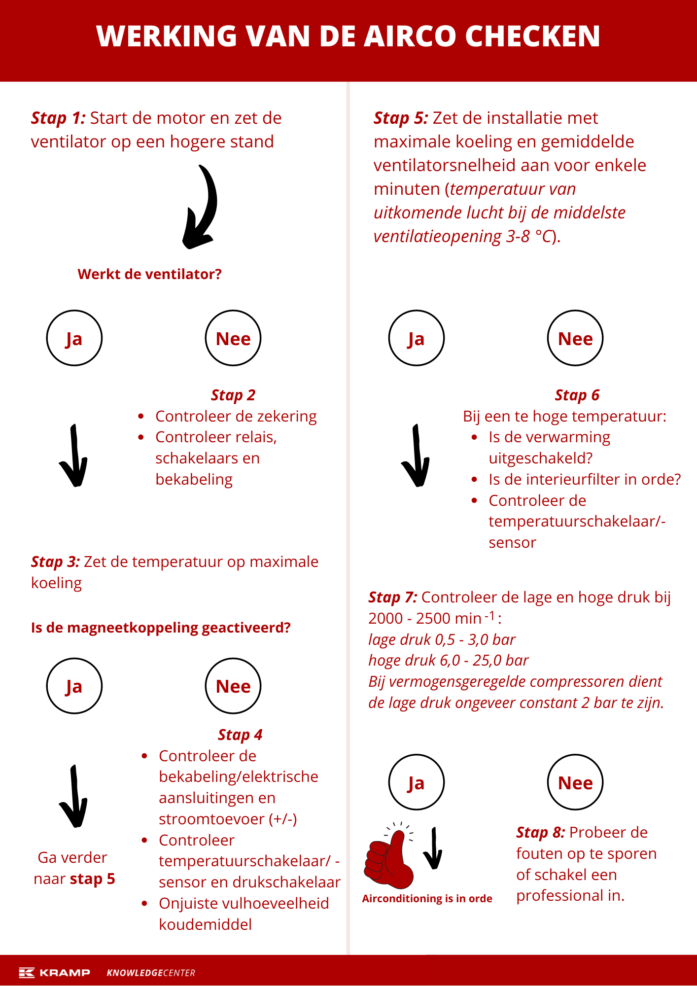 Tijdens een check worden de onderdelen gecontroleerd, het functie- en prestatievermogen getest en eventueel vervanging van het interieurfilter en desinfectie van de verdamper. Dit is te vergelijken met een ‘kleine beurt’.