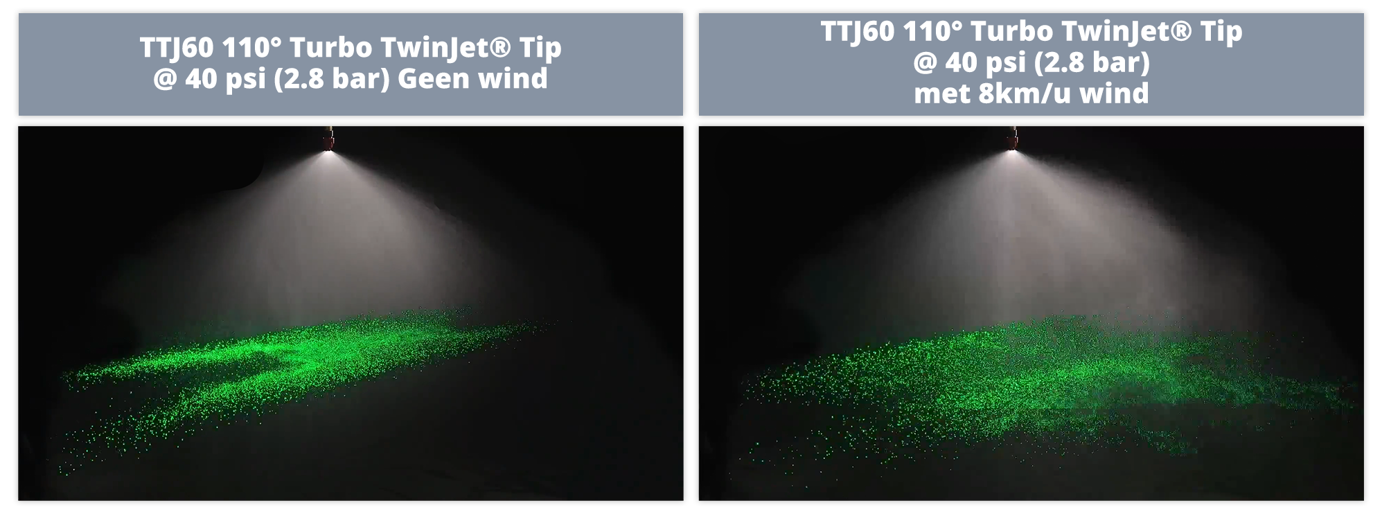 - Spuithoogte: Hoe groter de afstand tussen het spuitdop en het doelgebied, hoe groter de impact van de wind op drift.