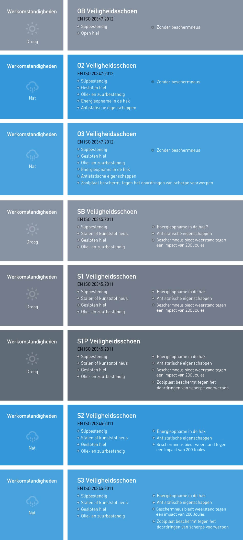 Overzicht veiligheidsnormeringen van werkschoenenAanvullende normen