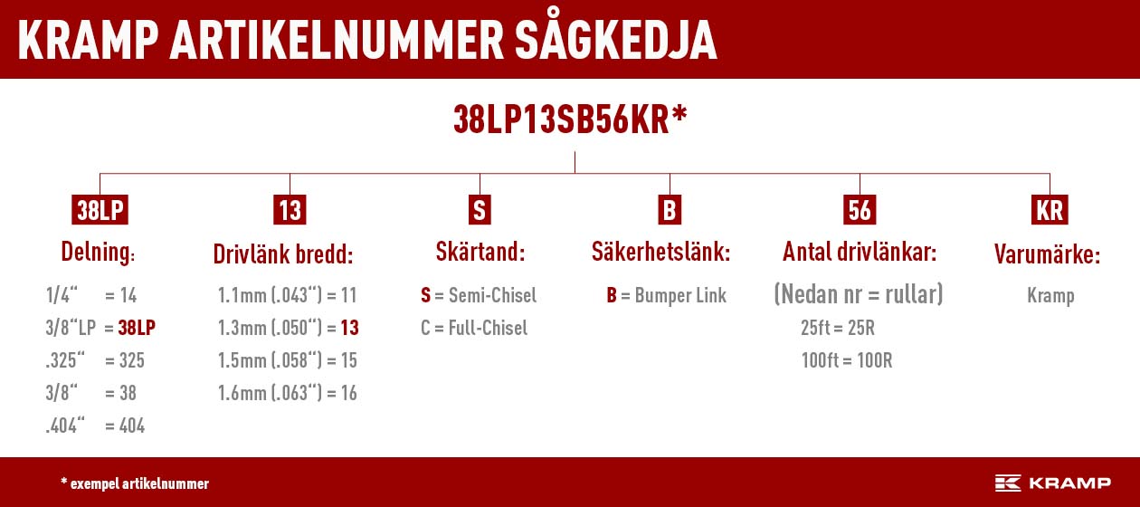 Eksempel på et Kramp artikkelnummer til sagkjedeHvorfor bør du skifte sagkjede regelmessig?