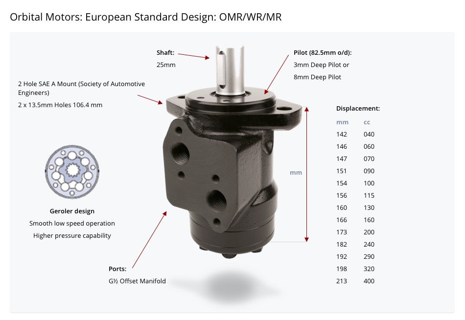 Motormodellen P blir også kalt Gerotor. Rotordelen består av to vitale deler, ytre kamring og rotor.Motormodellen R blir også kalt Geroller. Rotordelen består av tre vitale deler, ytre kamring, ruller og rotor.