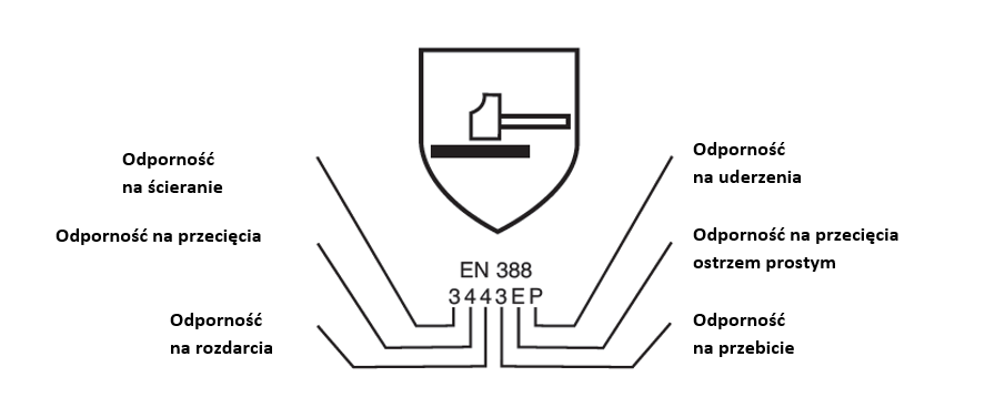 Norma EN-388:2016 gwarantuje bezpieczeństwo i jakość produktów oraz usług. Rękawice robocze muszą spełniać tę normę i są testowane pod kątem odporności na ścieranie, przecięcia (2x), rozdarcia, przebicie i uderzenia, co pozwala ocenić, przed jakimi zagrożeniami ochronią nas rękawice – i w jakim stopniu. Informacje te są widoczne na rękawicy w postaci poniższych kombinacji liter i cyfr.