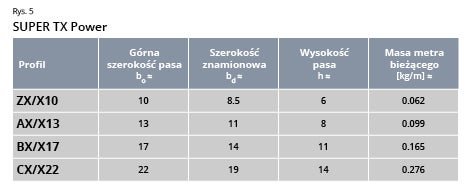 Z pomocą poniższych tabel dotyczących pasów Super X Power i Super TX Power dobierzesz odpowiedni uzębiony pas klinowy Optibelt.