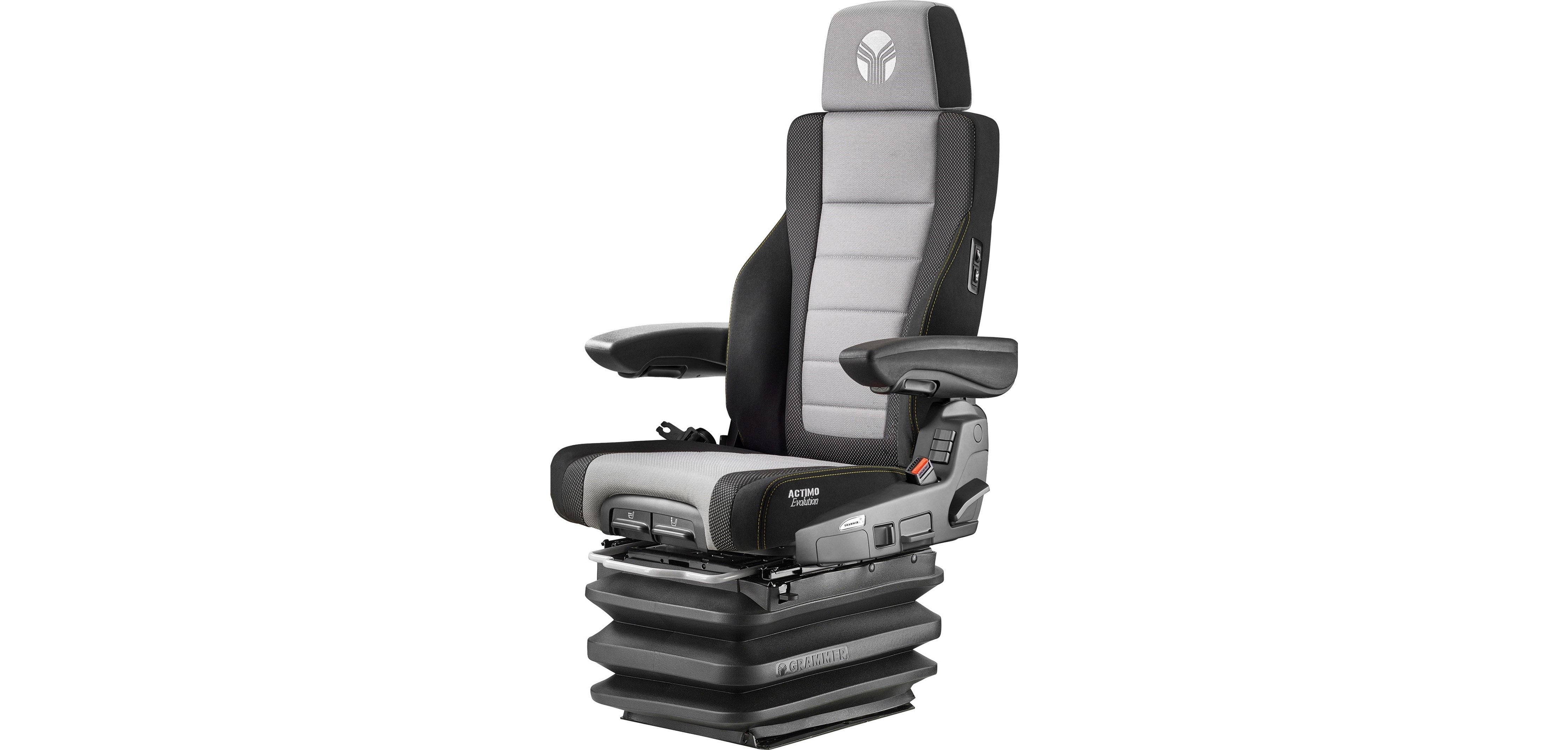 The Grammer Maximo seat with its sleek ergonomic design, featuring advanced suspension and adjustable backrest.Key benefits