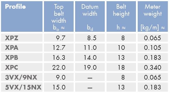 You can identify the correct wedge belt by referring to the diagram and chart below. Cross-sections are identified by top width and the depth dimension.