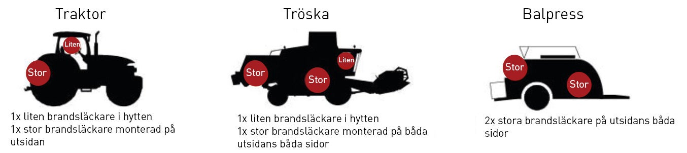 Vi rekommenderar att åtminstone ha följande antal släckare på dina maskiner, enligt bilden nedan.