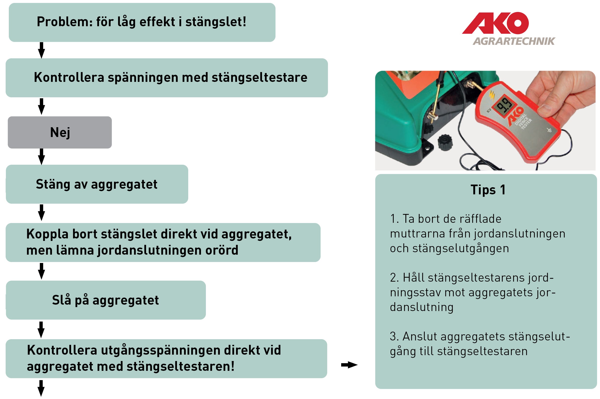 Du vet väl om att effekten på ditt stängsel kan sjunka? Då kan det vara bra att kontrollera var problemet finns med en digital stängseltestare. Längre ner på sidan finns en felsökningsguide som hjälper dig när problem uppstår.