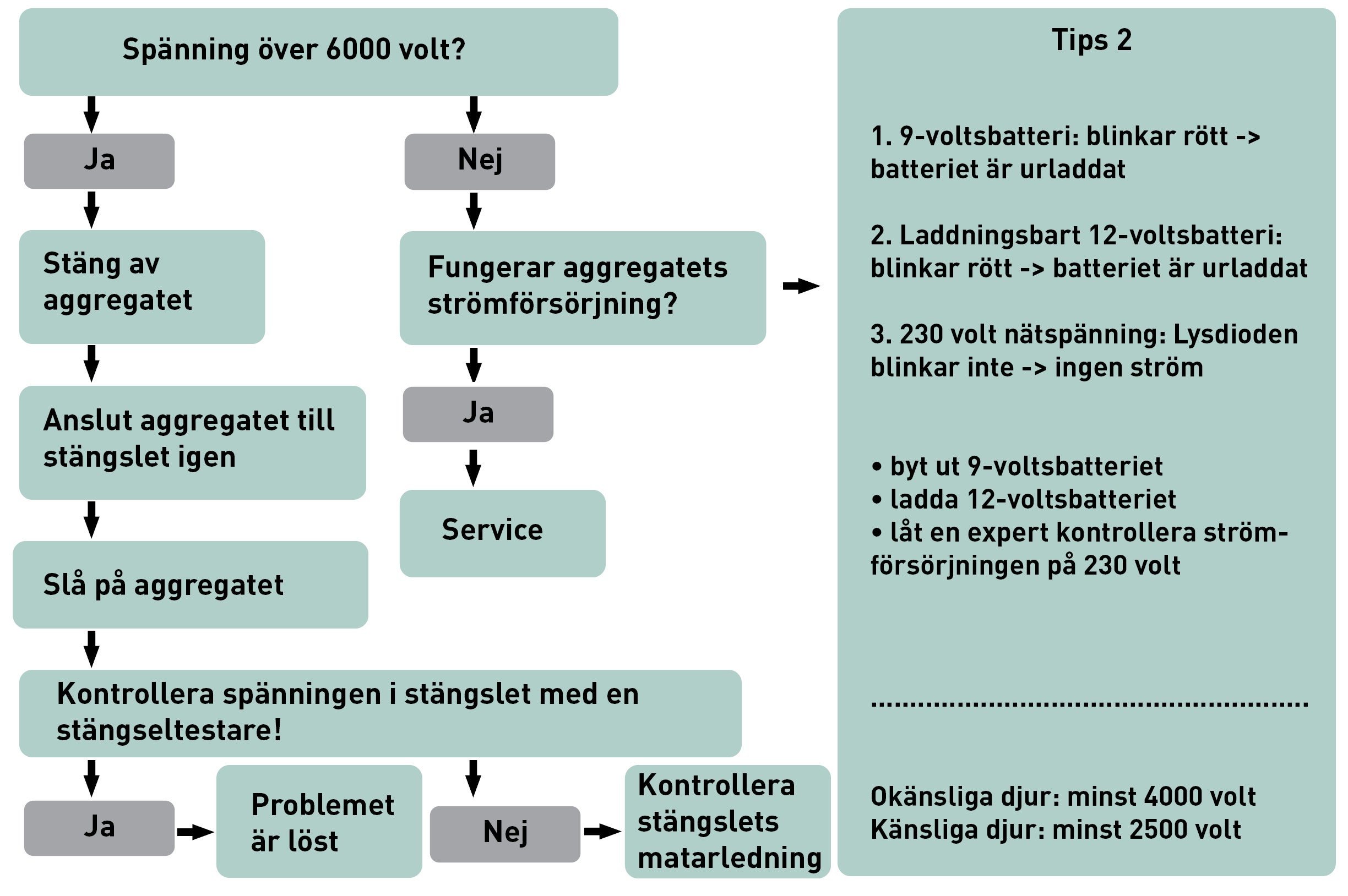 Felsökningsguide, se till att stängselaggregatet fungerar