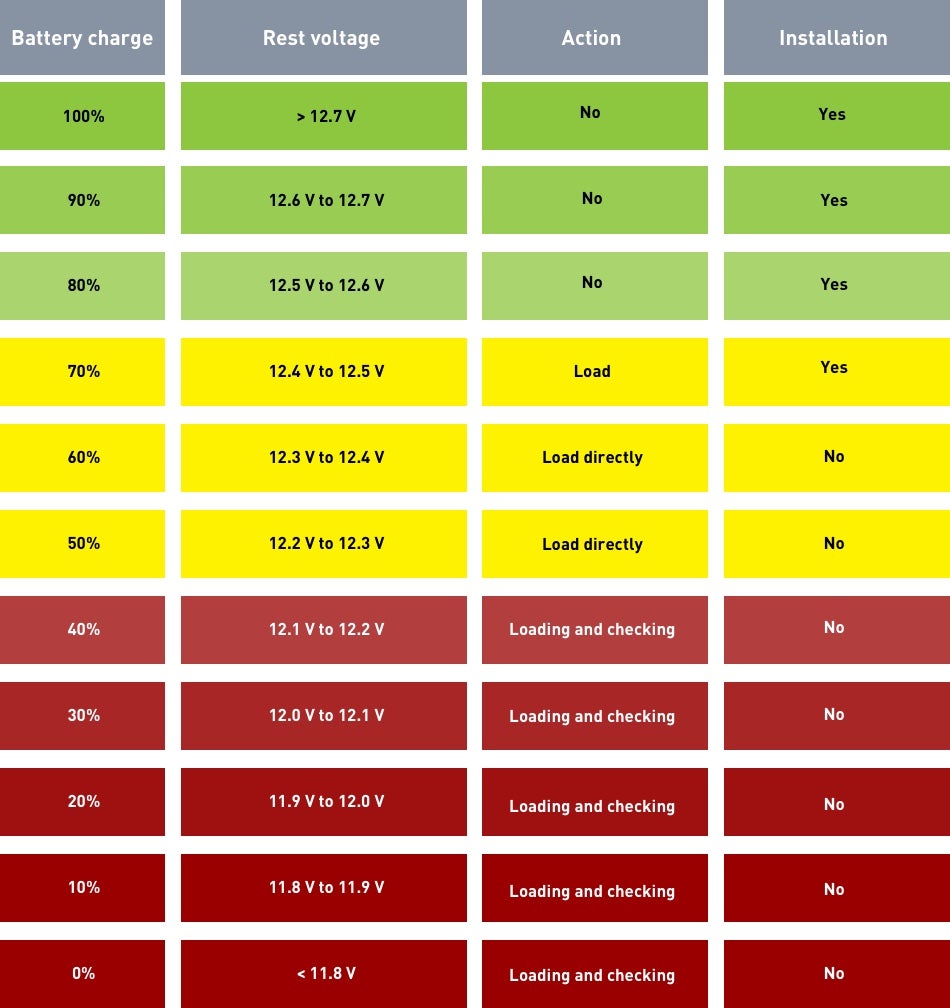 För att se till att batterierna fungerar som de ska är det bra att kontrollera dem med en batteritestare var tredje månad. Är resultatet lägre än 12,5 V? Då är det viktigt att du laddar batteriet till sin fulla kapacitet.