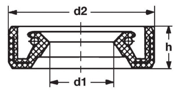 När man ska bestämma storleken på oljetätningen tittar man på innerdiametern (d1), ytterdiametern (d2) och bredden (h). De är ofta specificerade i millimeter (mm), även om det finns oljetätningar i tumstorlekar också. Bilden nedan ger en god indikation på hur de här tre dimensionerna lätt kan mätas.
