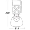| Detaljerad beskrivning | Denna mobila arbetslampa har en kraftfull inbyggd magnetisk bas. Den är lättviktig (0,9 kg), lätt att använda och kan laddas med 12V DC eller 230V AC. Lampan har två lägen: 30% och 100% ljusstyrka | |