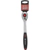 | Detaljerad beskrivning | Professionellt fintandat vändbart spärrskaft med säkerhetsspärr och hylssats, 1/2" fyrkantstappfattning, gjort av krom-vanadium-stål. Snabbt hylsbyte med ett tumtryck på lösgöringsknappen. | |